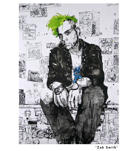 If you live under a rock and haven’t heard of him, Zak Smith is an artist best known for his “Pictures Showing What Happens on Each Page of Thomas Pynchon’s Novel Gravity’s Rainbow”, which was included in the 2004 Whitney Biennial. The title is pretty self-explanatory as to what the project was, a massive piece that covered over 750 pages from one of the most complicated novels ever written. Smith’s art is exquisite, intensely drawn with splashes of electric colors, sharp lines and energy throbbing in every complex detail.